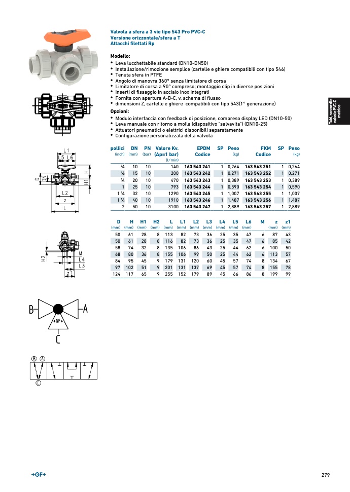 Valvola a sfera a 3 vie tipo 543 Pro PVC-