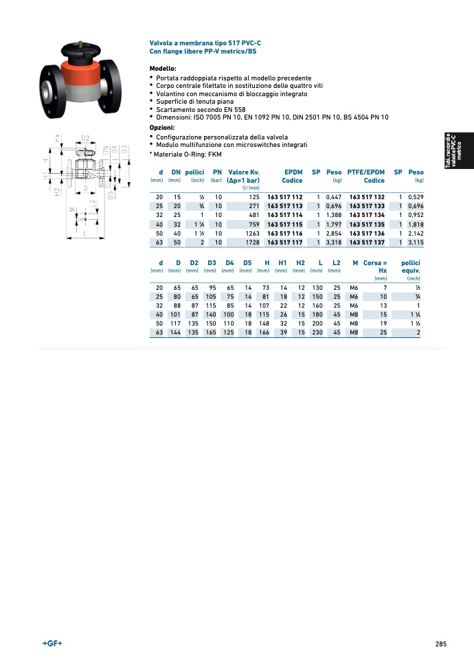 Valvola a membrana tipo 517 PVC-