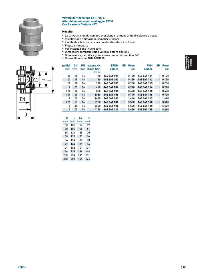 Valvola di ritegno tipo 561 PVC-C