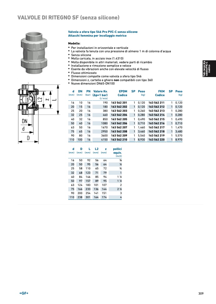 Valvola a sfera tipo 546 Pro PVC-C senza silicon