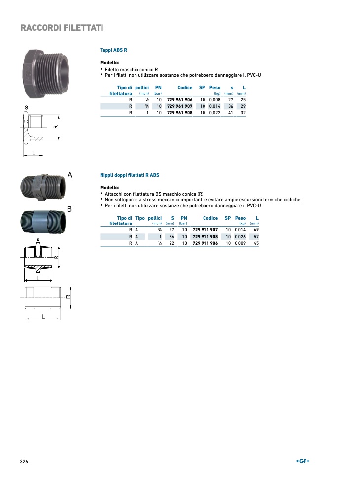 • Per i filetti non utilizzare sostanze che potrebbero danneggiare il PVC-