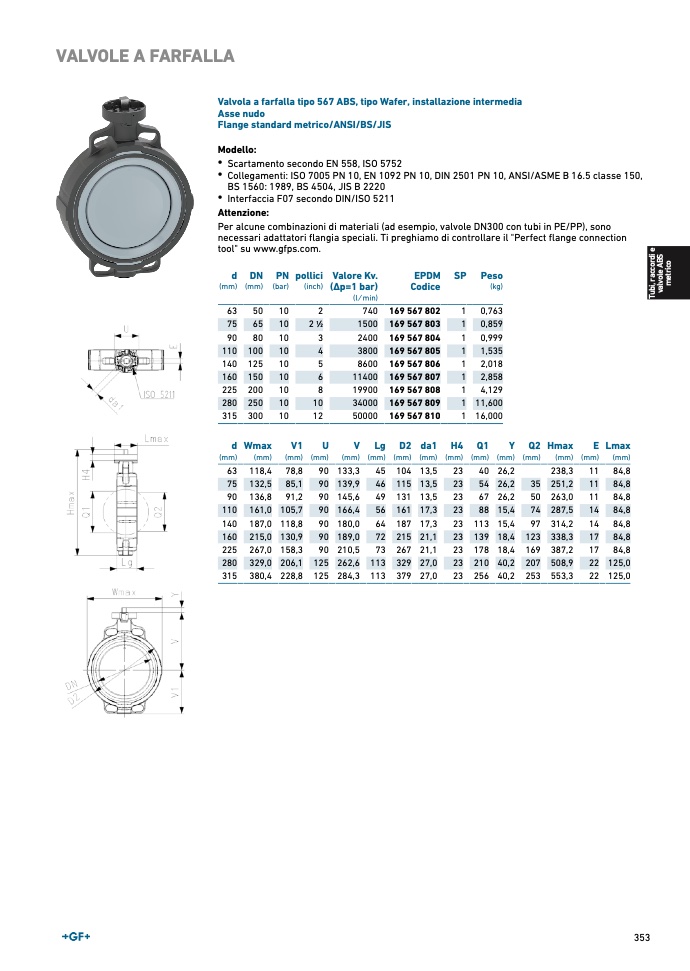 Valvola a farfalla tipo 567 ABS, tipo Wafer, installazione intermedia