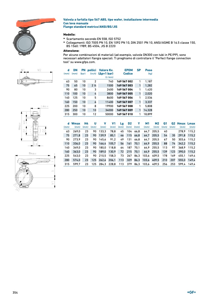 Valvola a farfalla tipo 567 ABS, tipo wafer, installazione intermedia