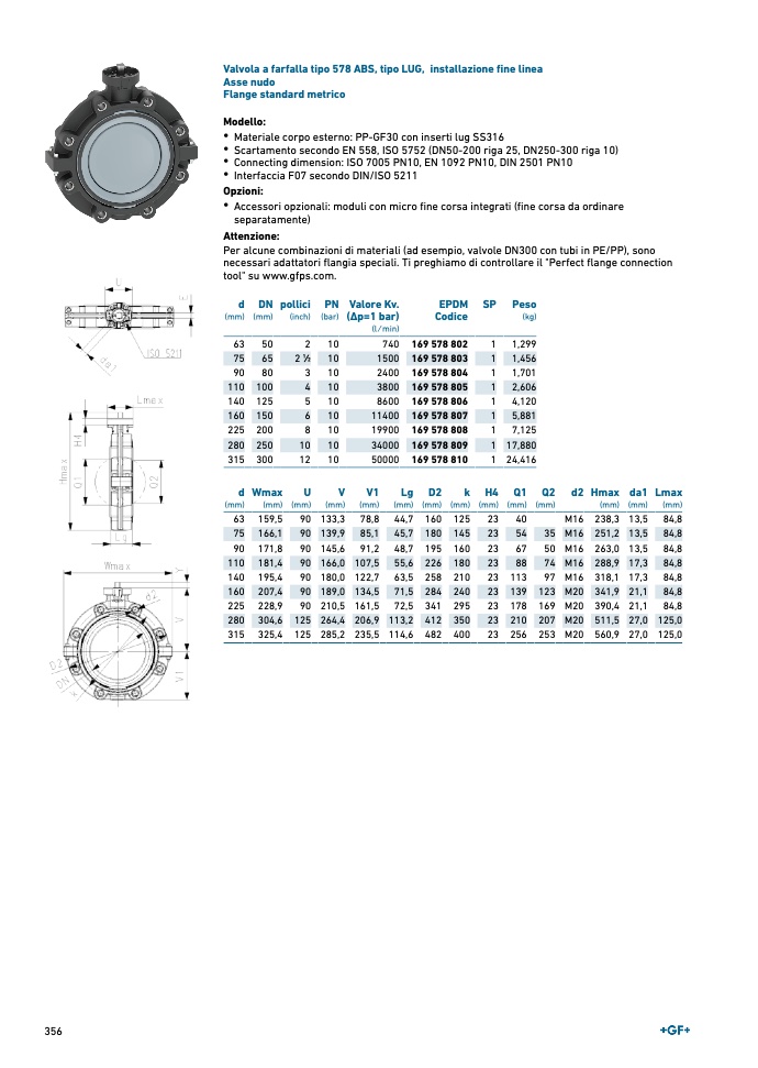 Valvola a farfalla tipo 578 ABS, tipo LUG, installazione fine linea