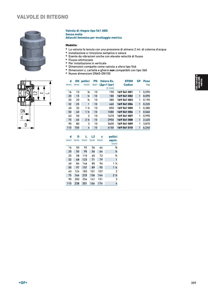 Valvola di ritegno tipo 561 AB