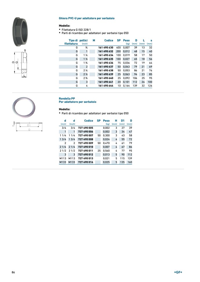 Ghiera PVC-U per adattatore per serbatoio