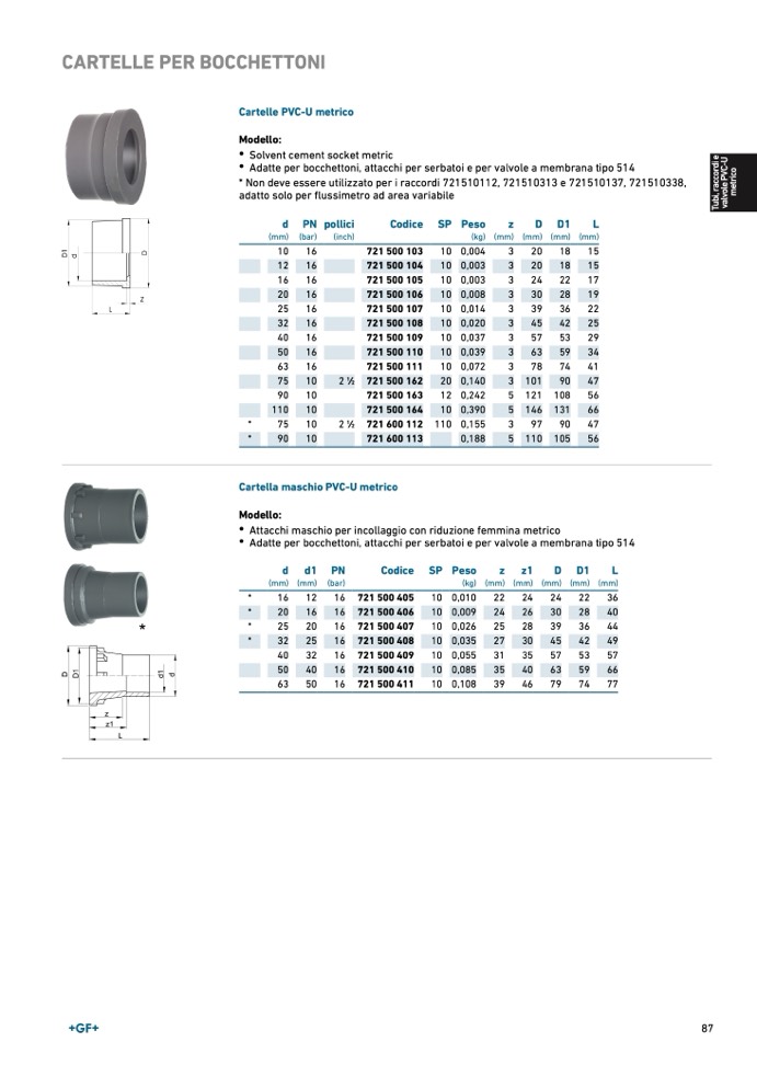 Cartella maschio PVC-U metrico