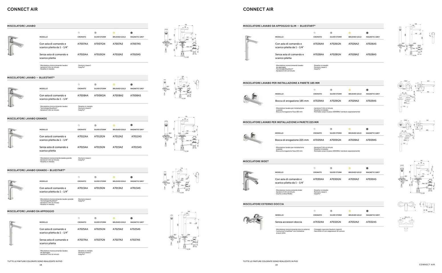 TUTTE LE FINITURE COLORATE SONO REALIZZATE IN PVD
