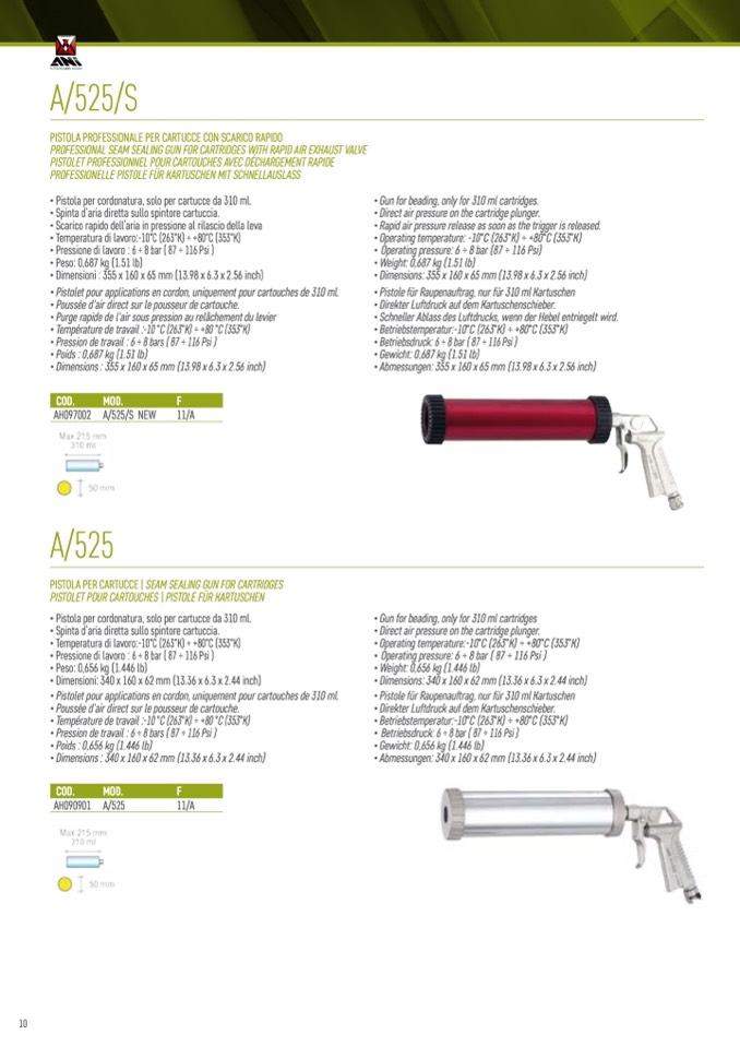 • Pistola per cordonatura, solo per cartucce da 310 ml.