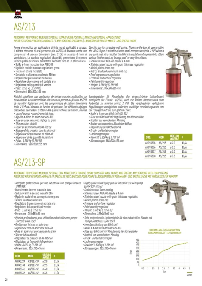 pulvérisation. La consommation réduite en air permet au pistolet AS/213