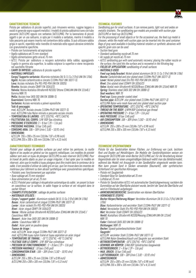 • CAMPI DI IMPIEGO: sabbiatura di piccole superfici
