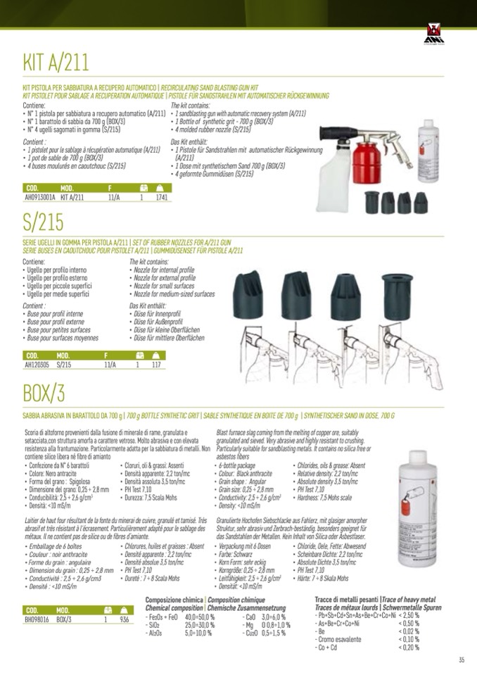 • 1 sandblasting gun with automatic rrecovery system (A/211)