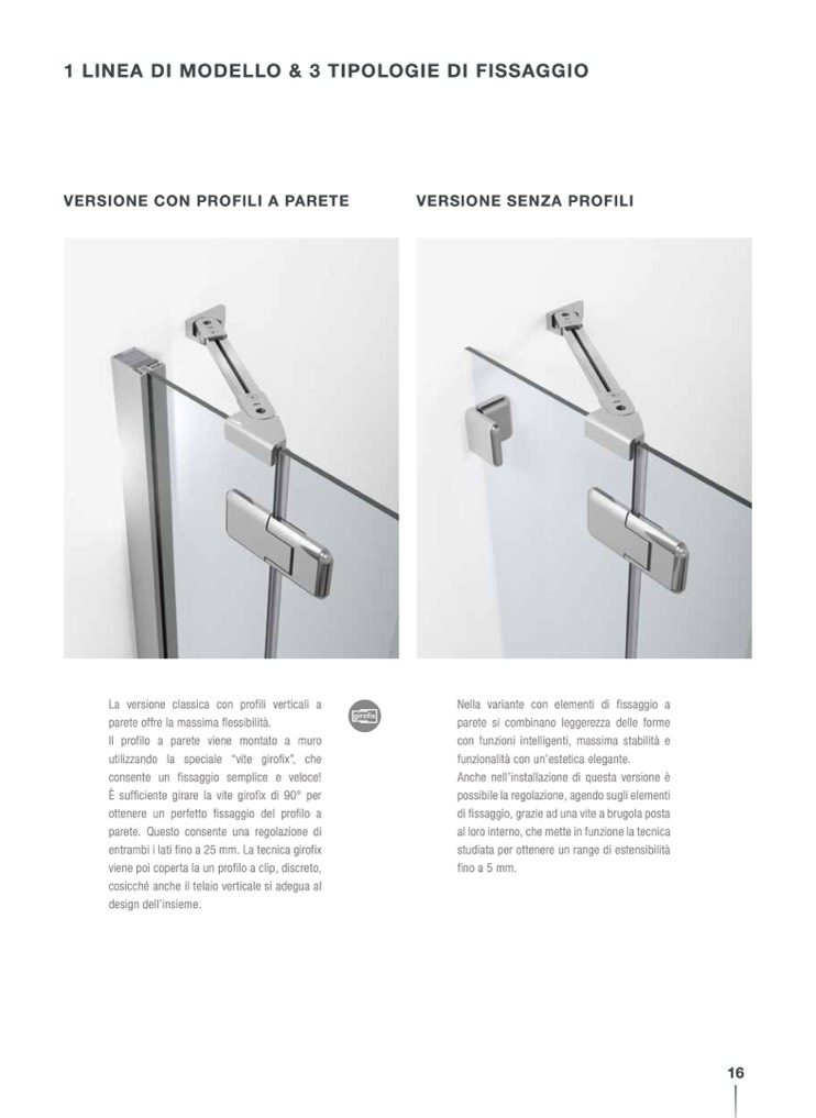 1 LINEA DI MODELLO & 3 TIPOLOGIE DI FISSAGGIO