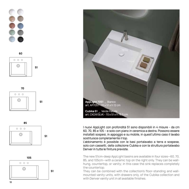 The new 51cm-deep AppLight basins are available in four sizes—60, 70,