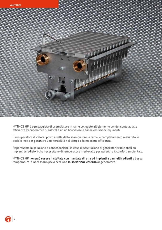 MYTHOS HP è equipaggiata di scambiatore in rame collegato all’elemento condensante ad alta