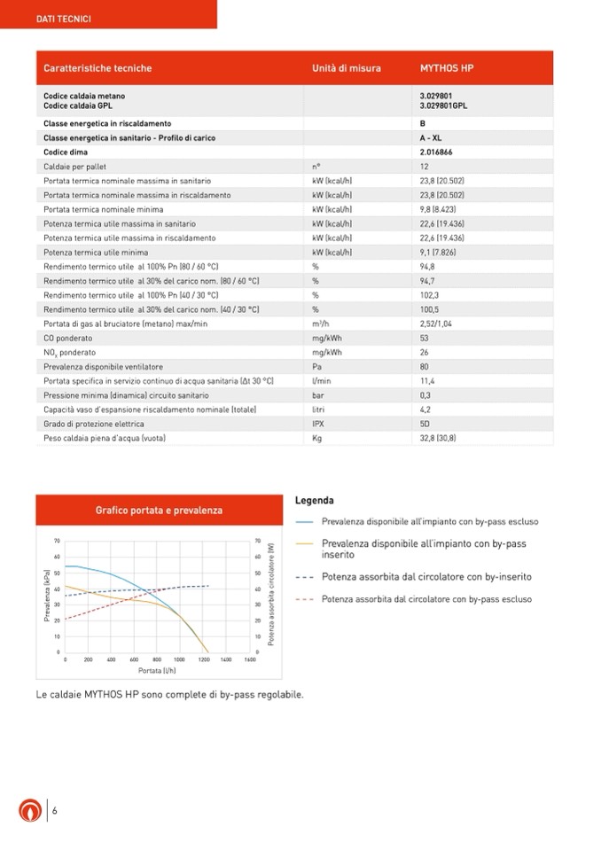 Portata specifica in servizio continuo di acqua sanitaria (∆t 30 °C)