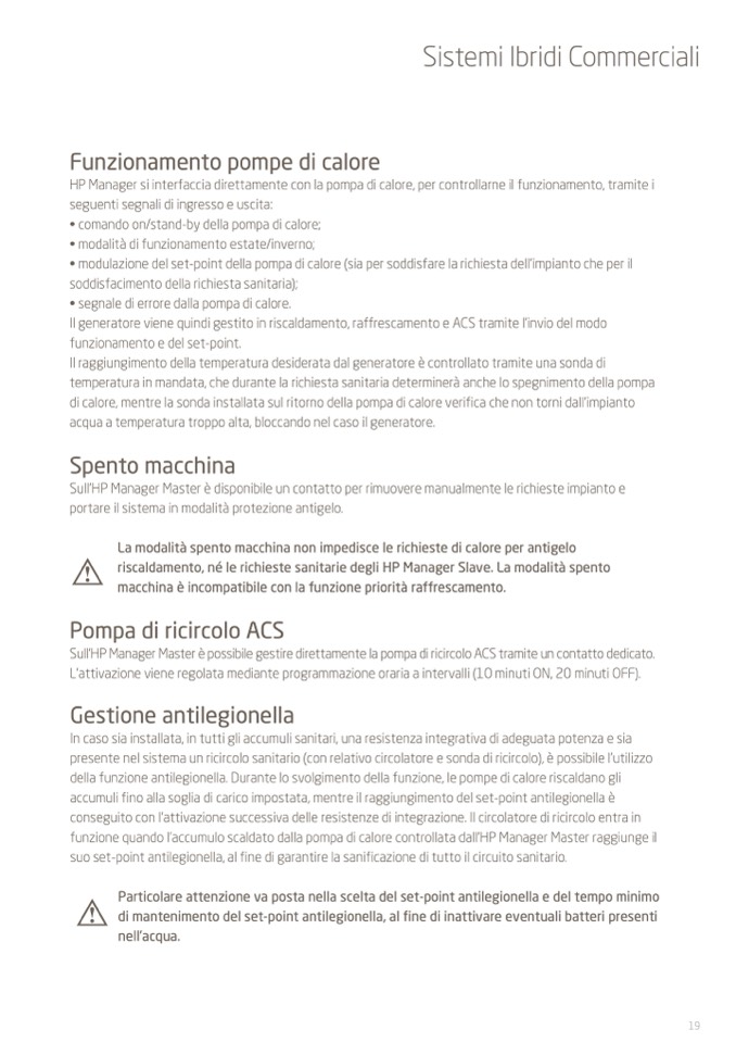 della funzione antilegionella. Durante lo svolgimento della funzione, le pompe di calore riscaldano gli