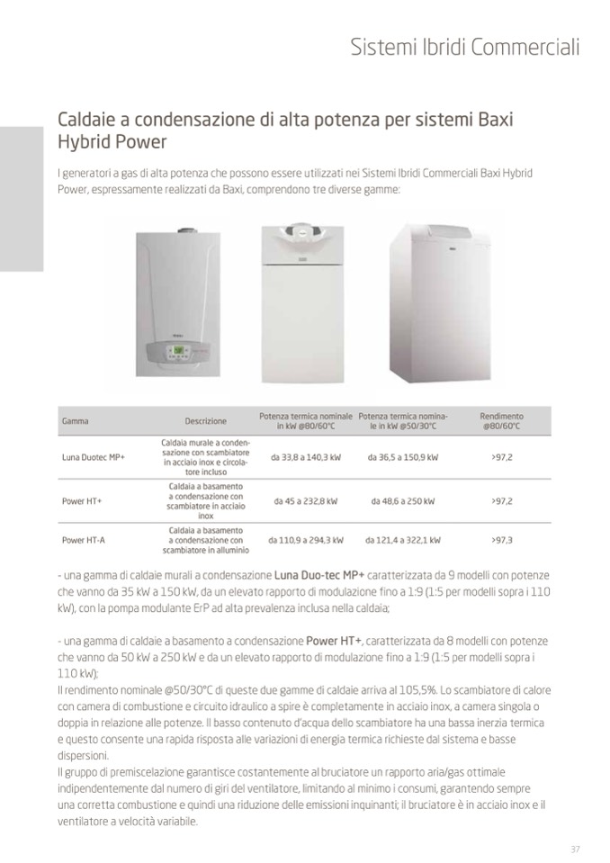 I generatori a gas di alta potenza che possono essere utilizzati nei Sistemi Ibridi Commerciali Baxi Hybrid