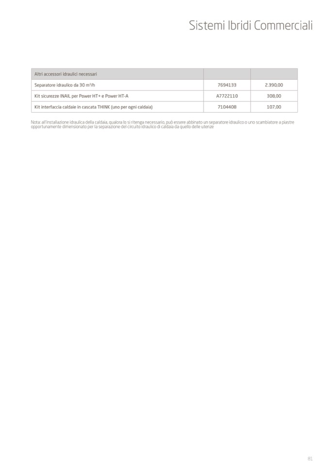 Nota: all’installazione idraulica della caldaia, qualora lo si ritenga necessario, può essere abbinato un separatore idraulico o uno scambiatore a piastre