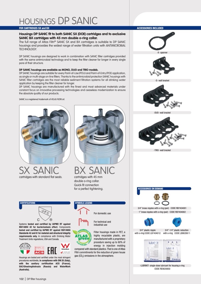 DP SANIC housings are suitable for every Point-of-Use (POU) and Point-of-Entry (POE) application,
