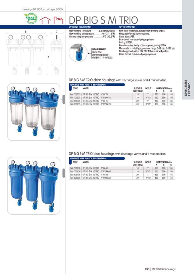 DP BIG S M TRIO clear housings with discharge valves and 4 manometers