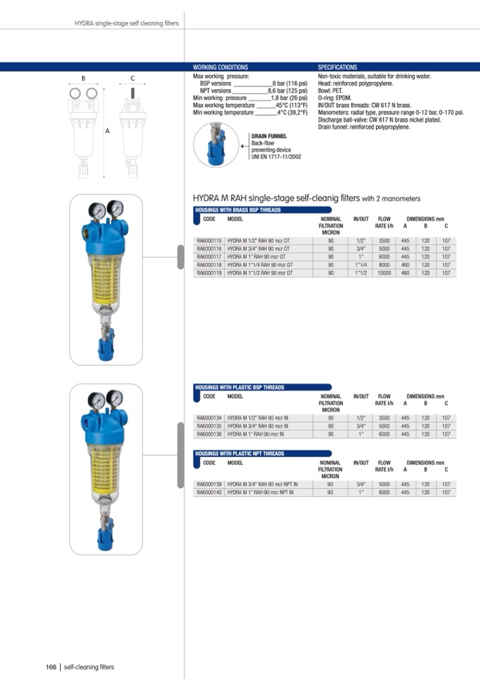 HYDRA M RAH single-stage self-cleanig filters with 2 manometers