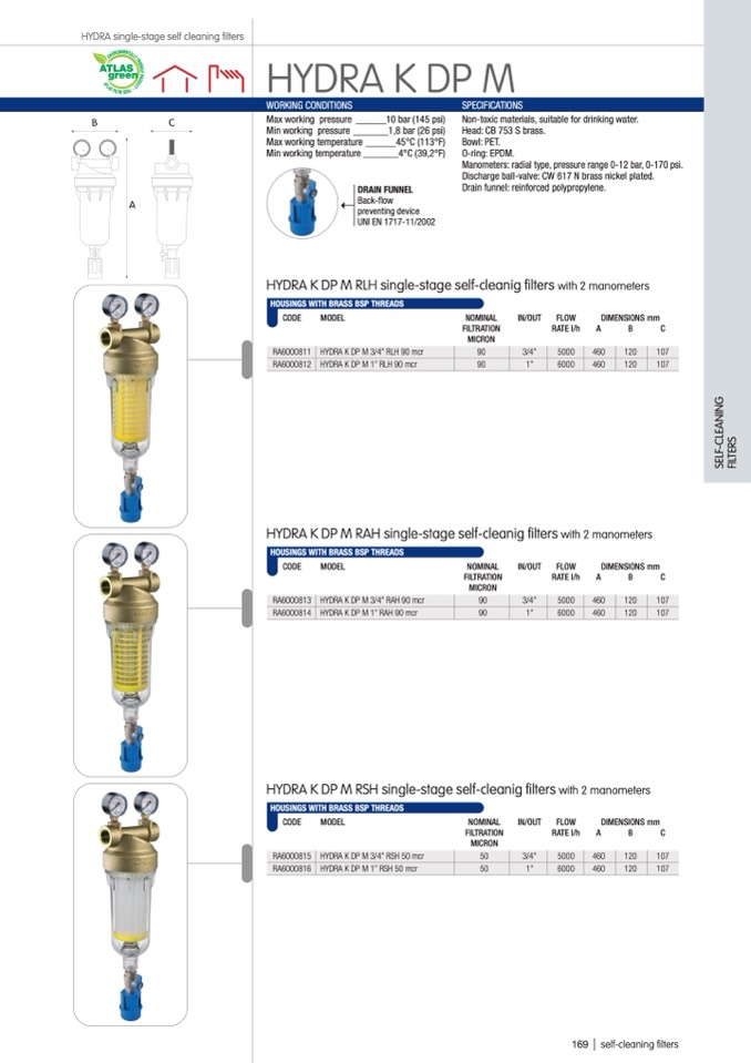 HYDRA K DP M RLH single-stage self-cleanig filters with 2 manometers