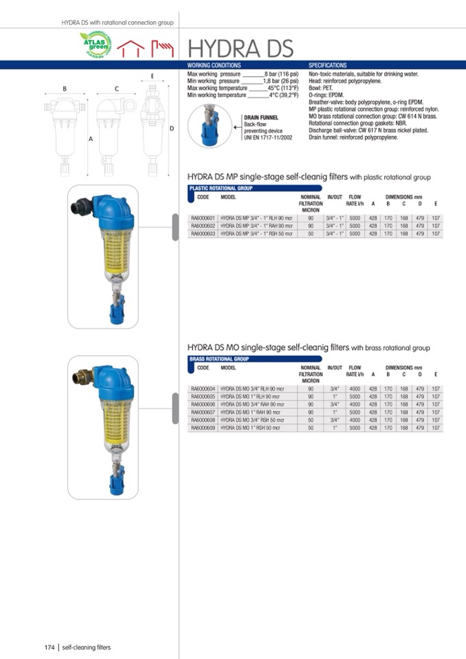 HYDRA DS MP single-stage self-cleanig filters with plastic rotational group