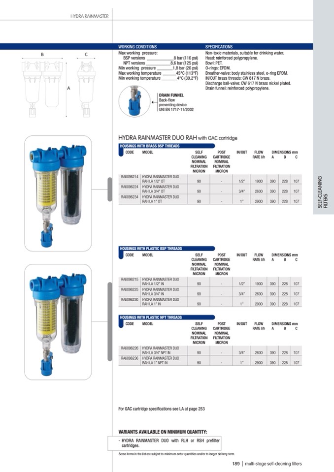 - HYDRA RAINMASTER DUO with RLH or RSH prefilter