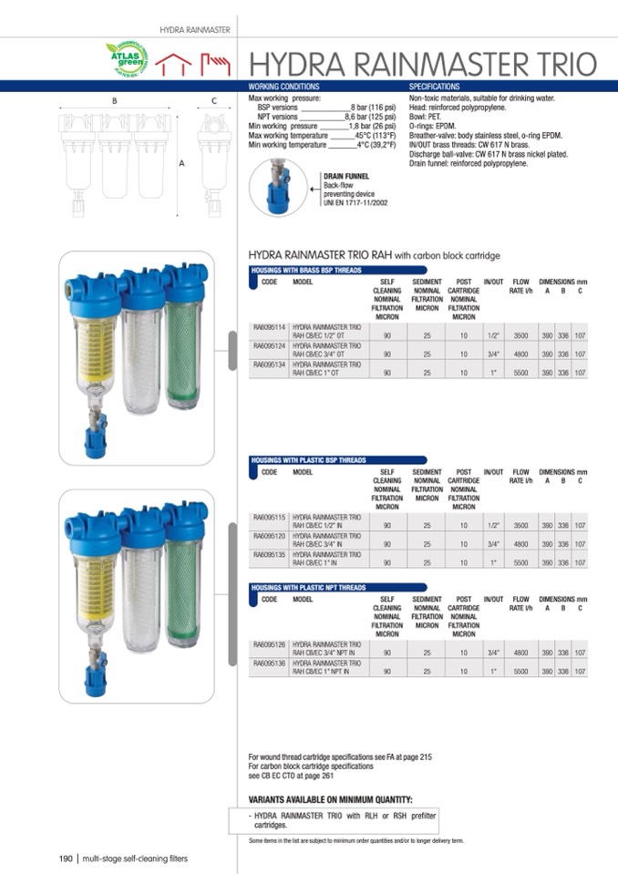 - HYDRA RAINMASTER TRIO with RLH or RSH prefilter
