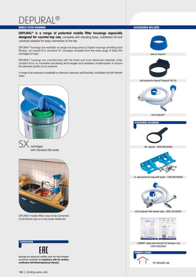 filtration, all models fit to standard 10” cartridges available from the wide range of Atlas Filtri