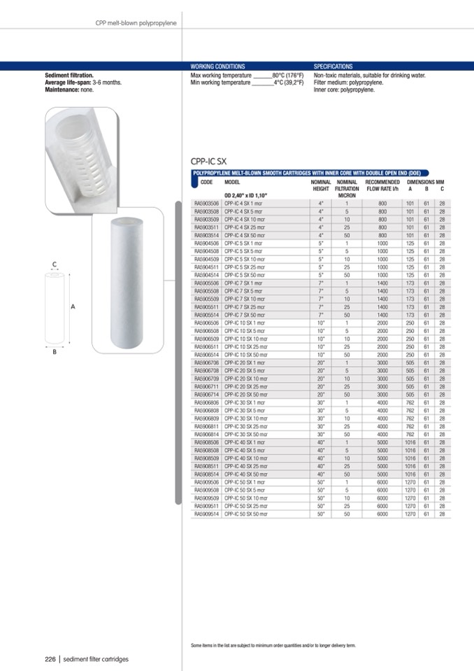 POLYPROPYLENE MELT-BLOWN SMOOTH CARTRIDGES WITH INNER CORE WITH DOUBLE OPEN END (DOE)