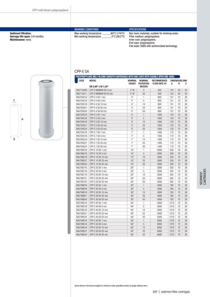 POLYPROPYLENE MELT-BLOWN SMOOTH CARTRIDGES WITH END CAPS WITH DOUBLE OPEN END (DOE)