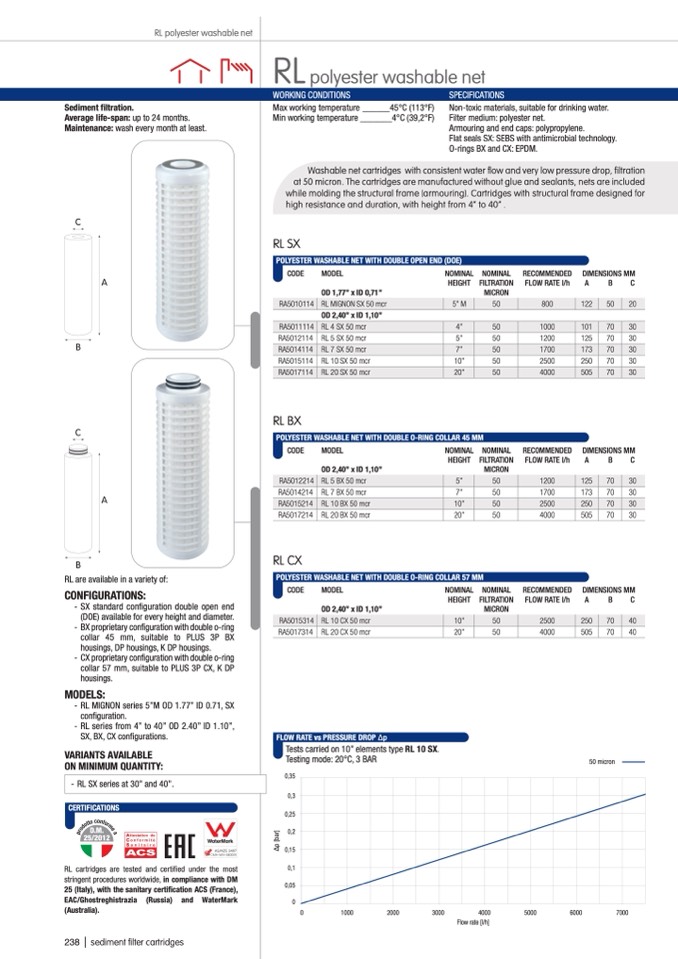 at 50 micron. The cartridges are manufactured without glue and sealants, nets are included