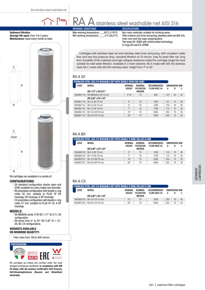 suitable for well water filtration. Available in 2 main versions: RA A made with AISI 316 stainless