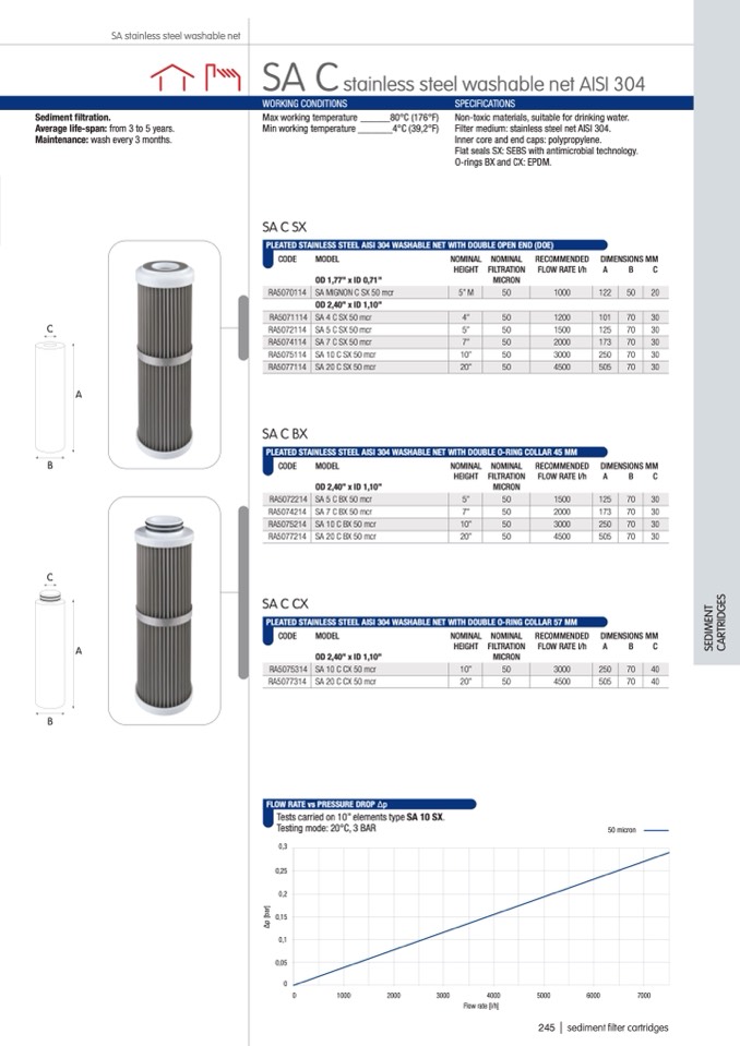 PLEATED STAINLESS STEEL AISI 304 WASHABLE NET WITH DOUBLE OPEN END (DOE)