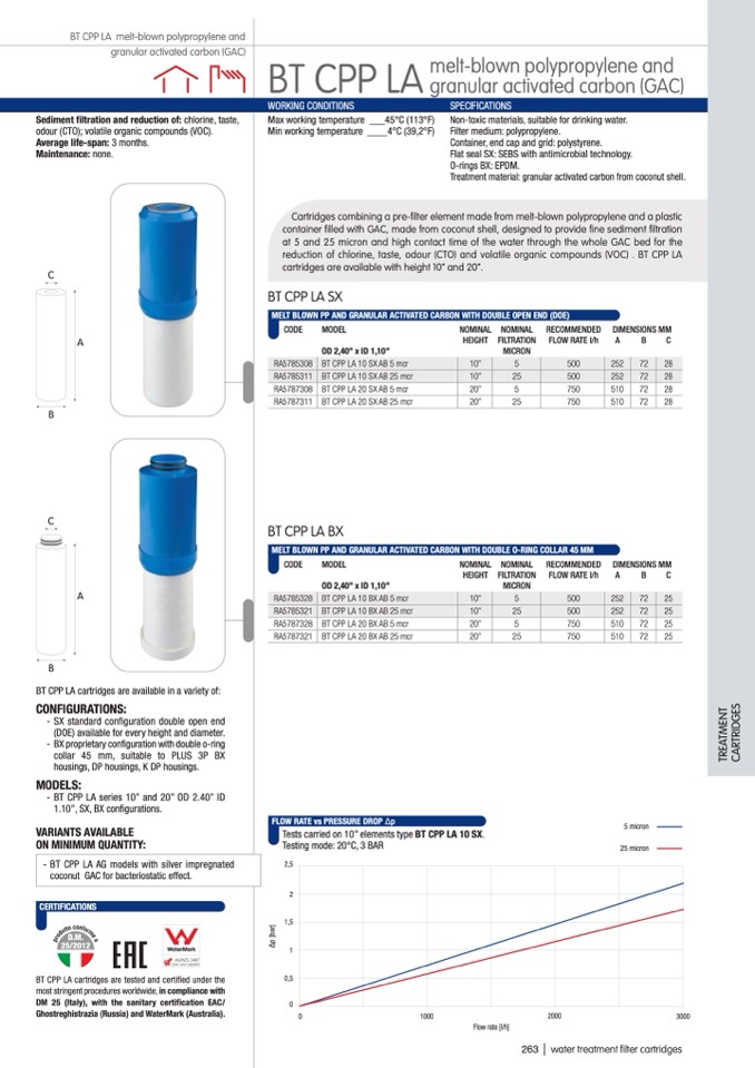 reduction of chlorine, taste, odour (CTO) and volatile organic compounds (VOC) . BT CPP LA