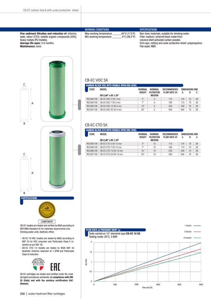 - CB-EC CTO 10 models are tested by WQA NSF 42