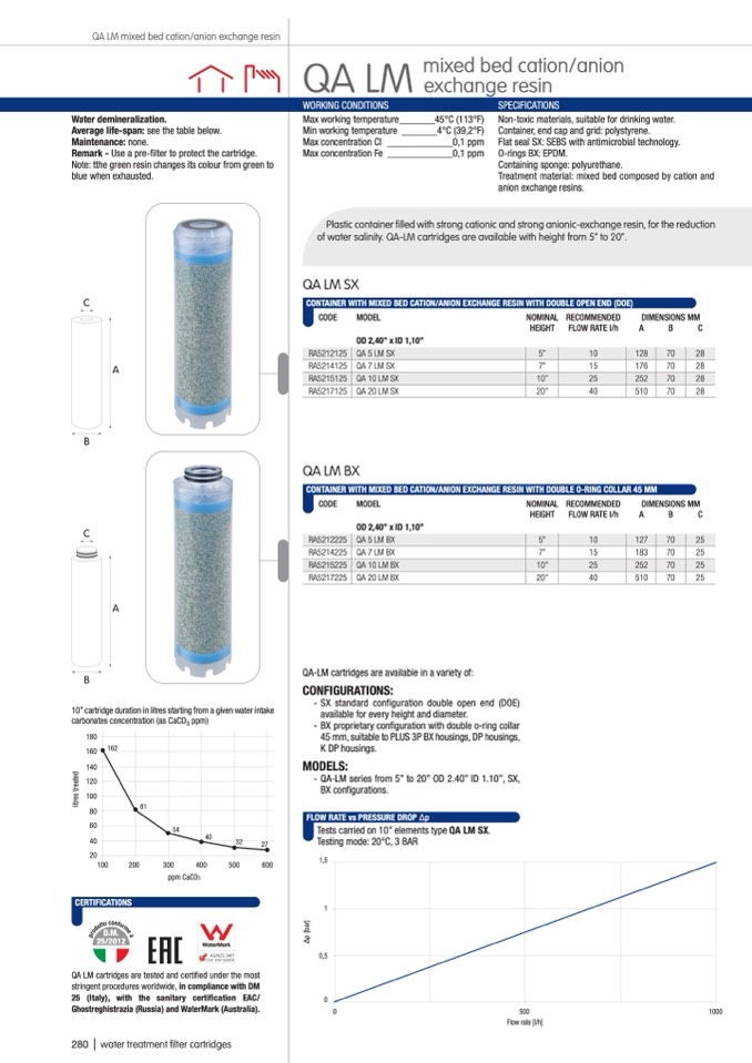 of water salinity. QA-LM cartridges are available with height from 5” to 20”.