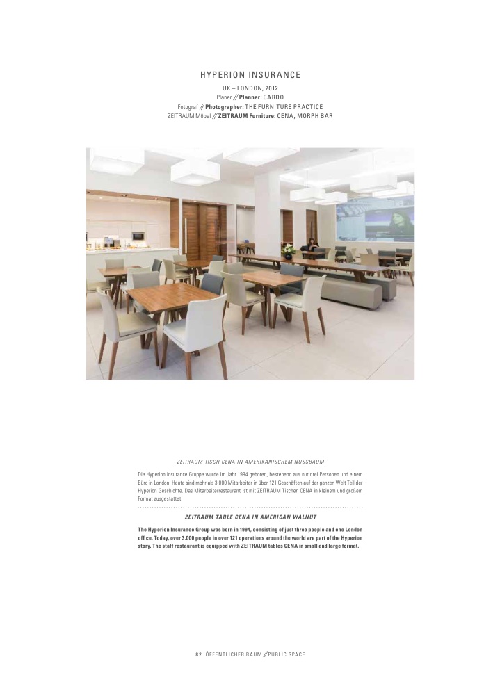 Hyperion Geschichte. Das Mitarbeiterrestaurant ist mit ZEITRAUM Tischen CENA in kleinem und großem