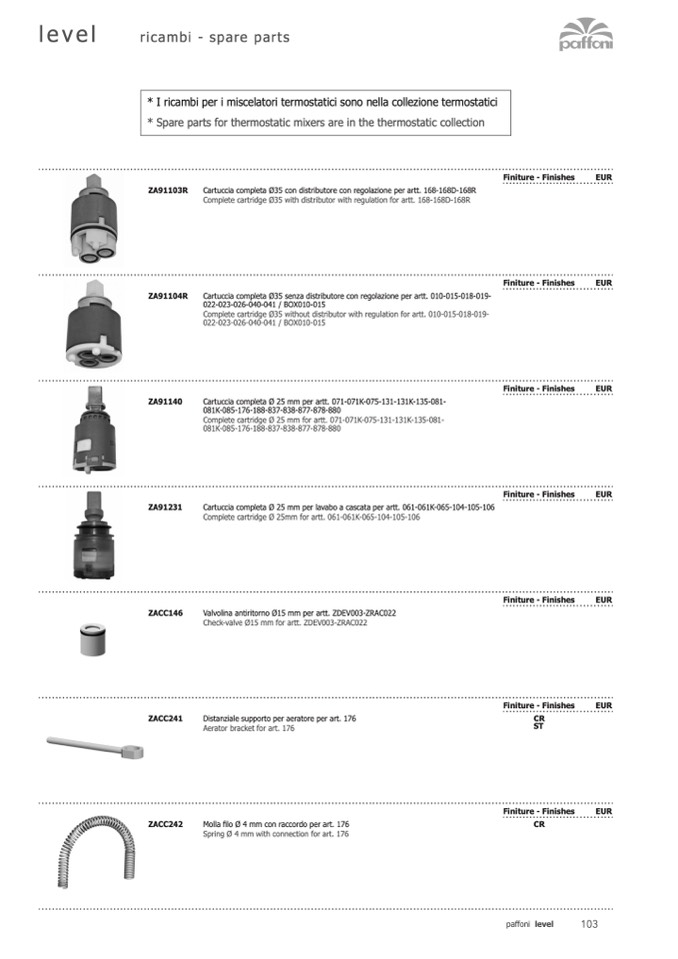 Cartuccia completa Ø 25 mm per lavabo a cascata per artt. 061-061K-065-104-105-106