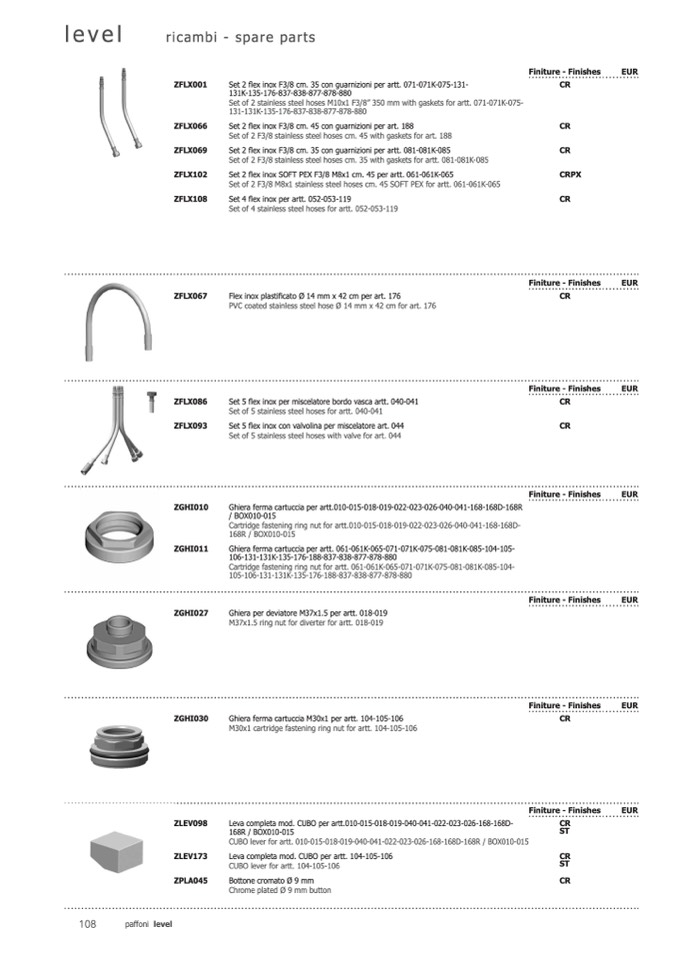 Leva completa mod. CUBO per artt.010-015-018-019-040-041-022-023-026-168-168D-