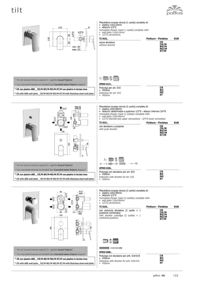 * For concealed/external set divided (see Concealed mixer Projects chapter)