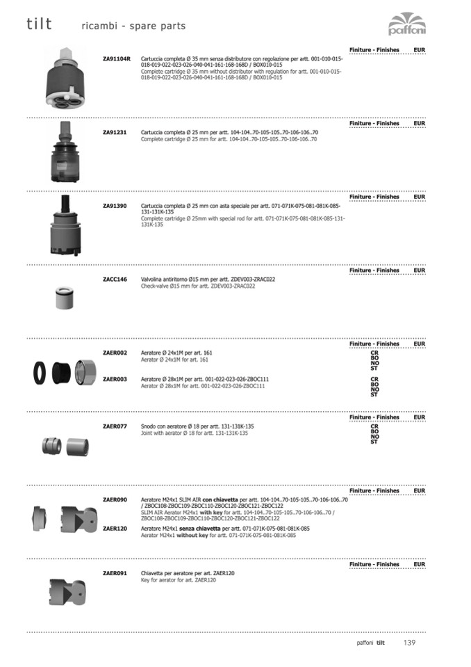 Cartuccia completa Ø 25 mm per artt. 104-104..70-105-105..70-106-106..70