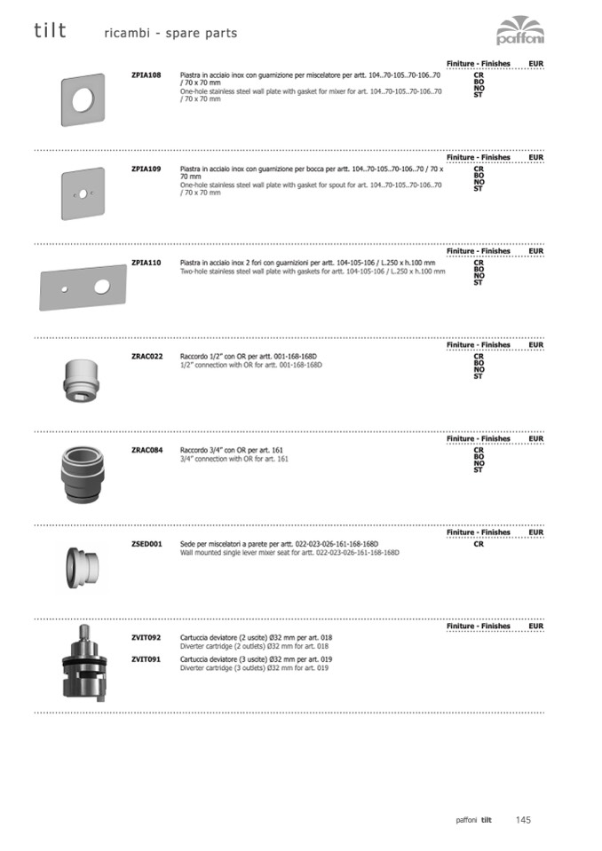 Piastra in acciaio inox con guarnizione per miscelatore per artt. 104..70-105..70-106..70
