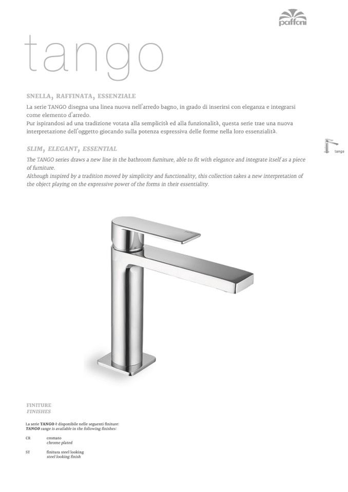 La serie TANGO disegna una linea nuova nell’arredo bagno, in grado di inserirsi con eleganza e integrarsi