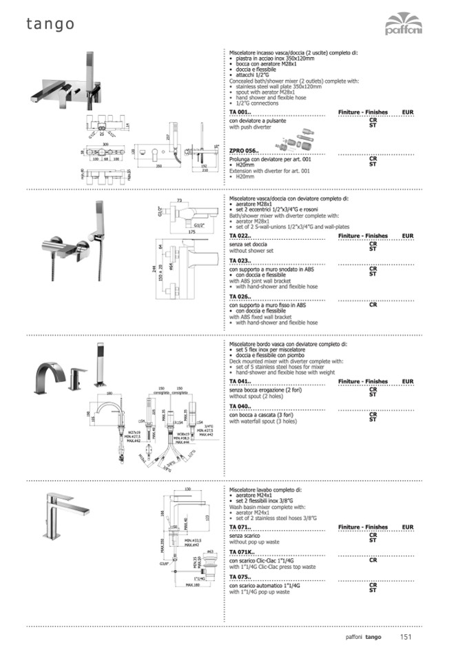 Miscelatore incasso vasca/doccia (2 uscite) completo di: