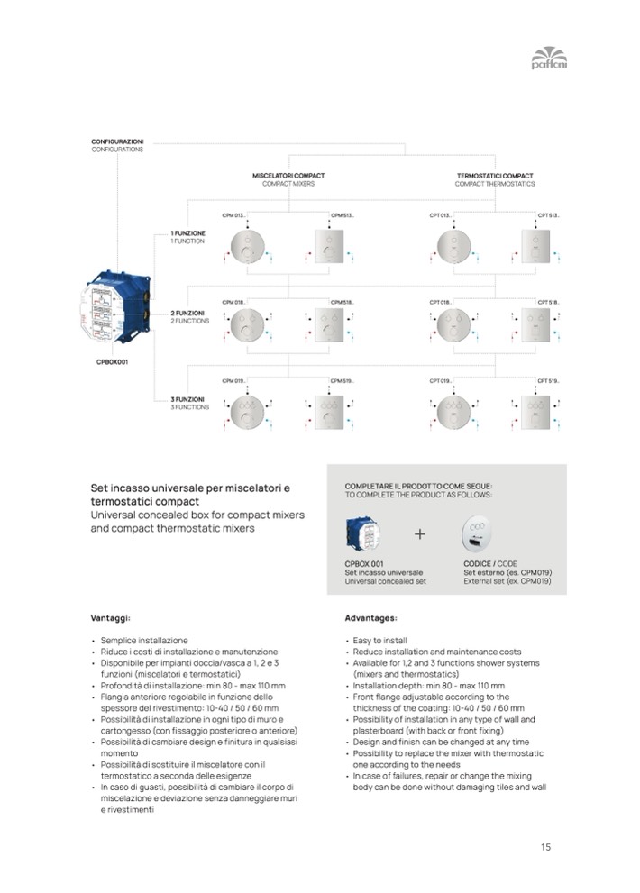 • Disponibile per impianti doccia/vasca a 1, 2 e 3
