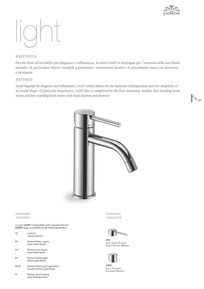 Piccolo fiore all’occhiello per eleganza e raffinatezza, la serie LIGHT si distingue per l’armonia della sua forma