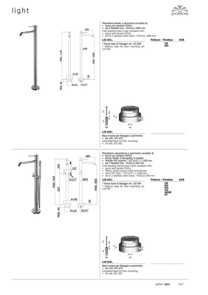* Senza base di fissaggio art. LIG 030